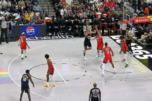 戈贝尔前三场限制其防守人投篮命中率仅32.7% 共计出手55次进18个