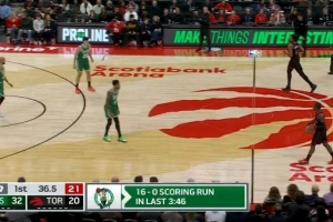 攻势渐起!凯尔特人第一节尾声轰出16-0攻势反超并领先猛龙12分