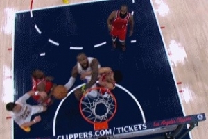冲锋陷阵!詹姆斯抹过哈登冲筐得分并造成犯规