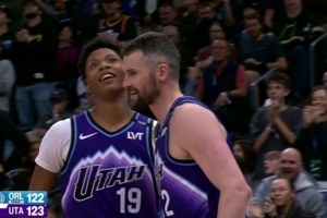 疯狂啃老!乐福突破反篮得分并造成犯规