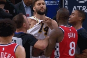 小摩擦!克莱伯和克里斯·邓恩篮下卡位互相推搡 裁判啥也没吹!