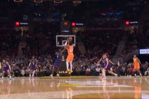 球进灯亮!米切尔脚踩logo轰进半场压哨打板三分球