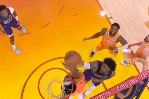 恐怖的防守能力!贾勒特·阿伦内线连续干扰 最后单臂摁帽小桥!