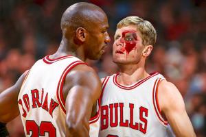 1995年秋天的公牛队内训练,乔丹和科尔在几次进攻回合中互相喷垃圾话,然后事态升级了。