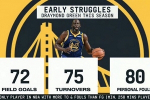 夸张!追梦本赛季至今75失误80次犯规均多于进球数 联盟独一份