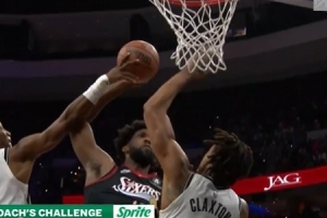 干干净净!恩比德欲隔扣造杀伤 篮网挑战成功改吹好帽