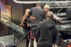 🫣前太阳队友!比尔拄着双拐与杜兰特拥抱!