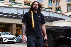 火箭入场:亚当斯飘逸长发硬汉风 申京酷炫墨镜 阿门&小贾朴实卫衣
