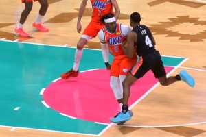 福克斯强突多特对抗后差点丢球&裁判吹多特犯规 雷霆挑战但失败