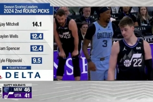 2024年次轮秀得分榜:韦尔斯&卡姆·斯潘塞场均12.4分 菲利波9.5分