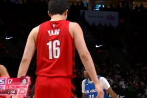 杨瀚森罚球线背打艾萨克 转身造到犯规两罚全中 不到1分钟4分1板