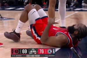 😂弄啥咧?哈登造三分犯规 躺在地上鬼畜“炒菜”?