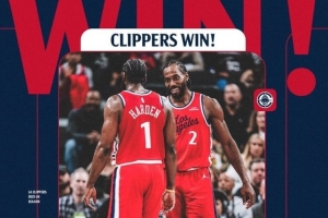 赛后快船发布赢球海报,哈登和莱昂纳德登上封面,值得一提的是,莱昂纳德居然露出了笑容,哈登则是背影入镜。