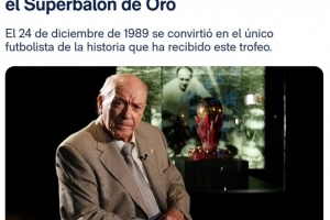 1989年12月24日,阿尔弗雷多·迪斯蒂法诺被授予超级金球奖,《法国足球》杂志以此向这位皇马传奇的伟大职业生涯致敬,他在最终评选中力压克鲁伊夫与普拉蒂尼,至今为此,《法国足球》只颁发过此奖项一次,因此迪斯蒂法诺是唯一拥有此项荣誉的足球运动员。