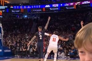 布伦森干拔三分落地后踩到大球右脚!后者吃到一级恶意犯规!