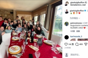 尤文、意大利名宿布冯晒家庭聚餐合照,庆祝圣诞节🎄🎁🎅