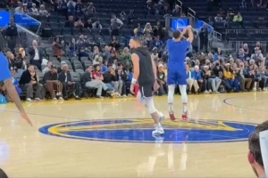 熟悉的场地熟悉的人!小吧现场直击:克莱与库里背靠背训练三分