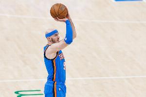 本场比赛,雷霆球员卡鲁索进攻端各种大空位三分机会就是投不进,尤其上半场8投全铁。