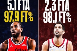 小卡赛季罚球命中率97.9% 历史单赛季纪录是卡尔德隆的98.1%
