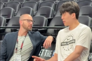 小吧直击:杨瀚森赛前积极用英语与工作人员交流 绘声绘色~