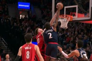 太炸裂了💥!小卡底角突破突然暴起 侧身单臂隔扣克林根!