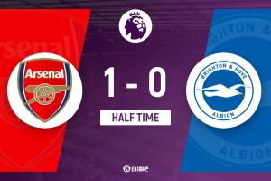 半场-阿森纳暂1-0布莱顿 厄德高远射打进赛季首球萨卡助攻