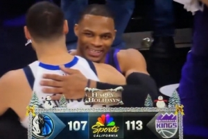 谁的青春再回首!威少赛后微笑着和克莱拥抱寒暄