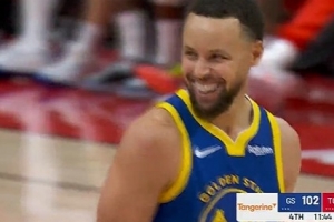 逆天手感!库里点飞防守失衡强投再度打2+1 率队稳住局势