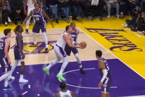 无敌!东契奇突破欧洲步对抗威少 被切后空中拉杆上篮2+1!