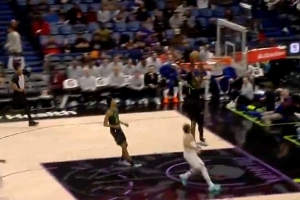 下快攻飞速!锡安绕前抢断后反击 接球轻松双手暴扣!