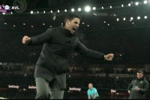 4-0领先维拉!阿尔特塔张开双臂握拳庆祝
