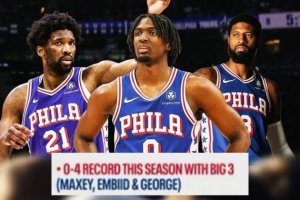今日又要输?本赛季恩比德&乔治&马克西同时出战 76人0胜4负