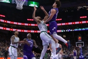 石破天惊!18号秀克莱顿反击腾空暴起 力压怀特单臂隔扣