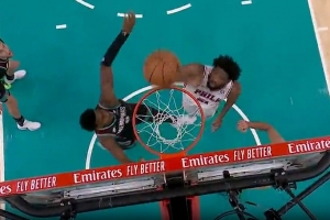 搁这刷篮板呢?恩比德连续3个回合补篮不中 最后点篮终于终结