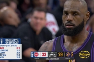 詹姆斯生日夜场均32.9分&NBA历史最高 库里场均29.4分并列第三