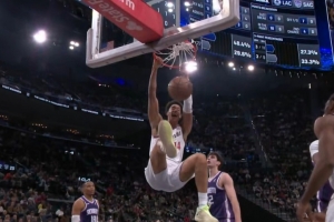 冲击力十足!尼德豪泽篮下接球 腾空暴起大猩猩扣篮