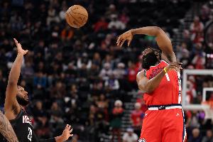 哈登季后赛场均22分2断 投篮48.6%&三分41% 均为离开火箭后新高