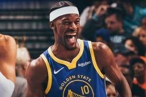 赛后,勇士官方晒出赢球海报,笑容灿烂的巴特勒登上封面。