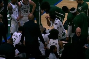 场下也很投入!雄鹿暂停期间 字母哥一直在跟队友们指导战术