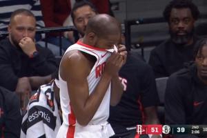 🤣杜兰特被沃尔夫打铁后的球砸到脸爆粗:投的啥垃圾玩意儿