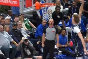 表演时刻!弗拉格抢到篮板推反击 中路空切起飞单臂滑翔战斧!