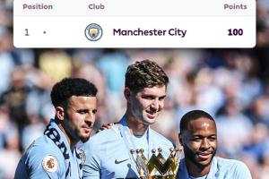 2017-18赛季,瓜迪奥拉率领曼城夺得英超冠军,38轮比赛32胜4平2负积100分,创下英超单赛季积分纪录,并一直保持到现在。