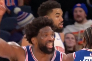 喜剧人!恩比德空篮完成赛季首扣 双手指天庆祝异常兴奋!