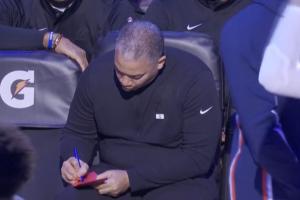 比赛还没开始 赶紧再努努力!泰伦·卢赛前在替补席上奋笔疾书!