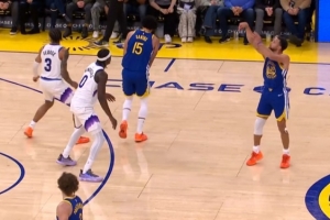 投射依旧独一档!库里刚过中线直接扔出超远三分球 单节已经18分