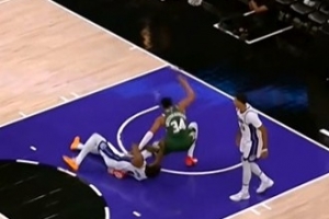 身体素质过硬!字母哥拼抢时被压到 但无大碍