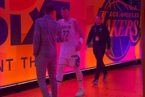 排面!佩林卡在球员通道等东契奇 击掌庆祝胜利后一起回更衣室