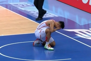 希望没事啊!贺希宁拼抢时被吕俊虎扫到眼睛 痛苦倒地久久不起