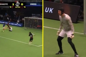 体育资讯1月6日讯 据talkSPORT报道,现年43岁的切尔西传奇门将切赫代表其前队友特里的业余球队“26ers”出战了一场六人制球赛。