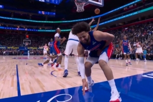 看着都疼!康宁汉姆被唐斯顶到要害还吹犯规 活塞挑战改进攻犯规
